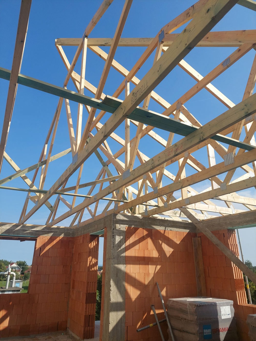 A tetőszerkezetet barna színű Bramac tetőcserép fedi.